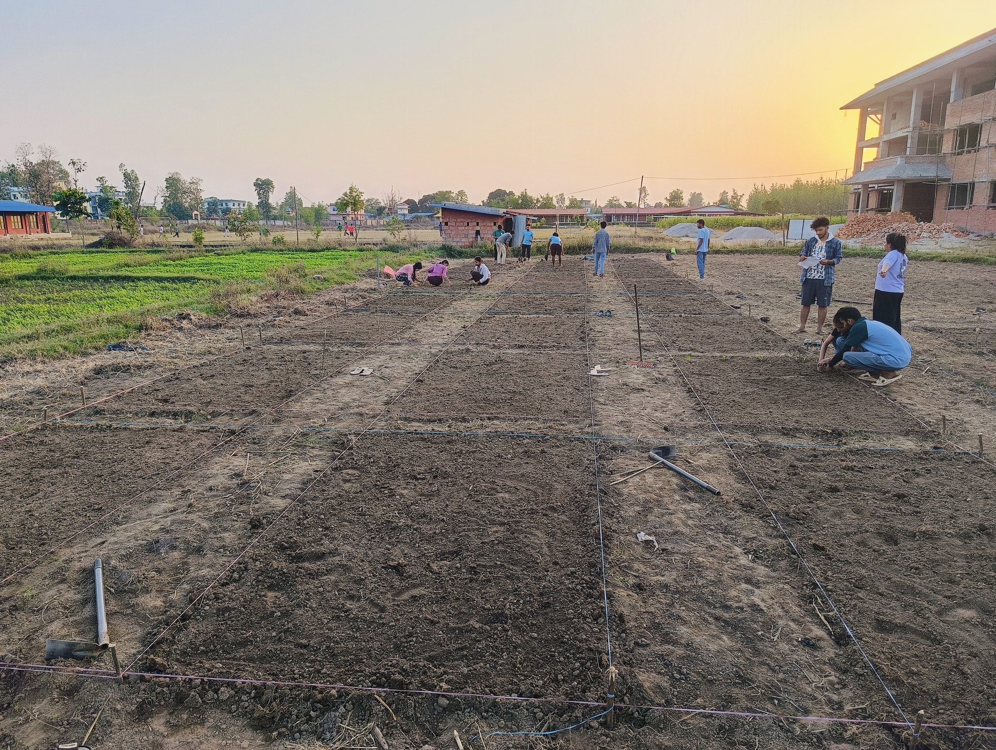 At Tikapur, On April 20, 2025, As part of the ongoing study "Influence of Biofertilizers on Quality and Yield of Chilli," 35-day-old seedlings of Pusa Jwala and NS1701 varieties of chillies were successfully transplanted for field trials which was layout...